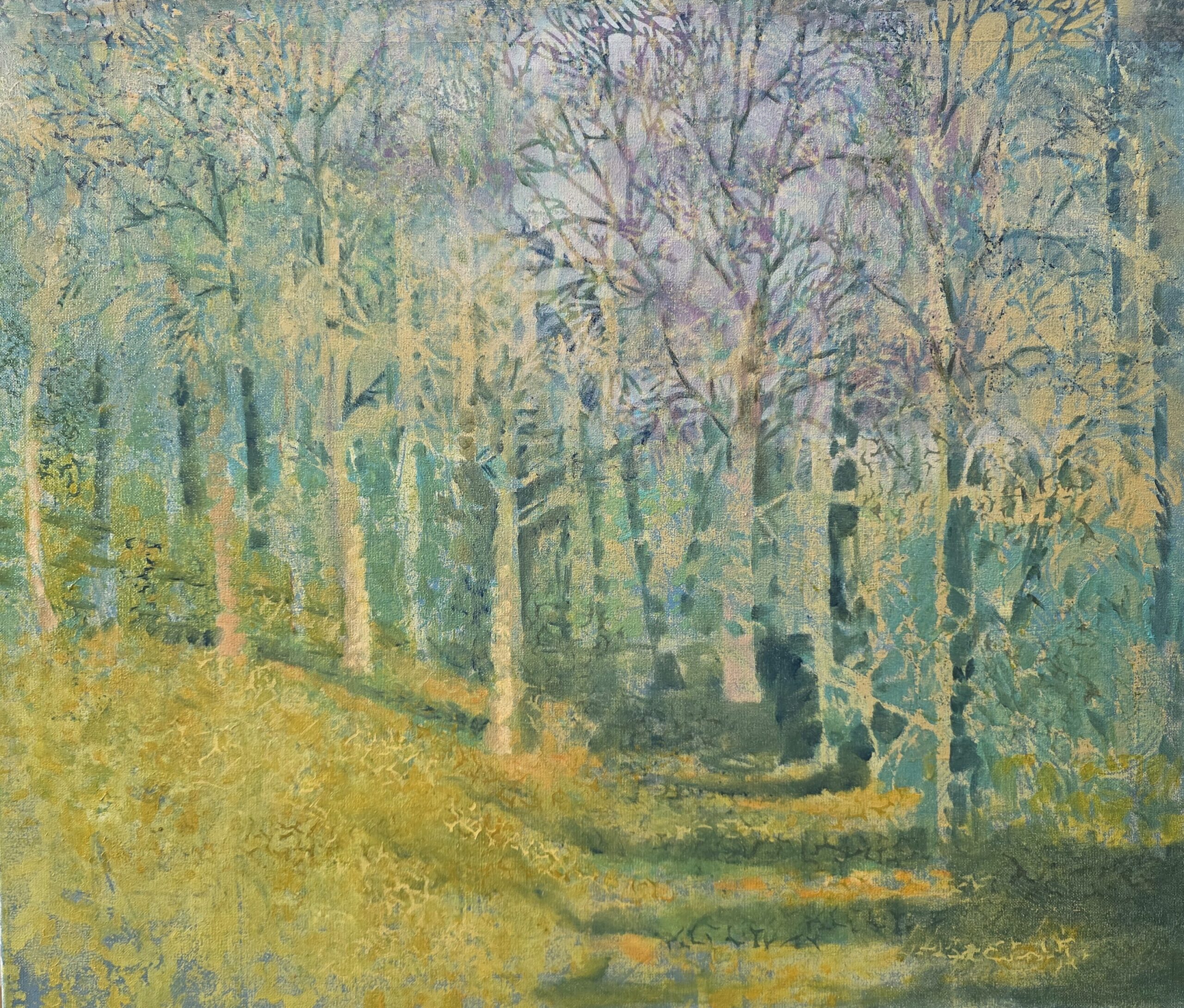 Obraz przedstawia las, który nie jest jedynie zbiorem drzew, lecz żywym, oddychającym organizmem skąpanym w porannej mgle. Praca balansuje na granicy jawy i snu, zapraszając widza do świata, w którym czas na moment  zastygł, przestał istnieć.