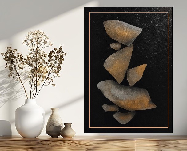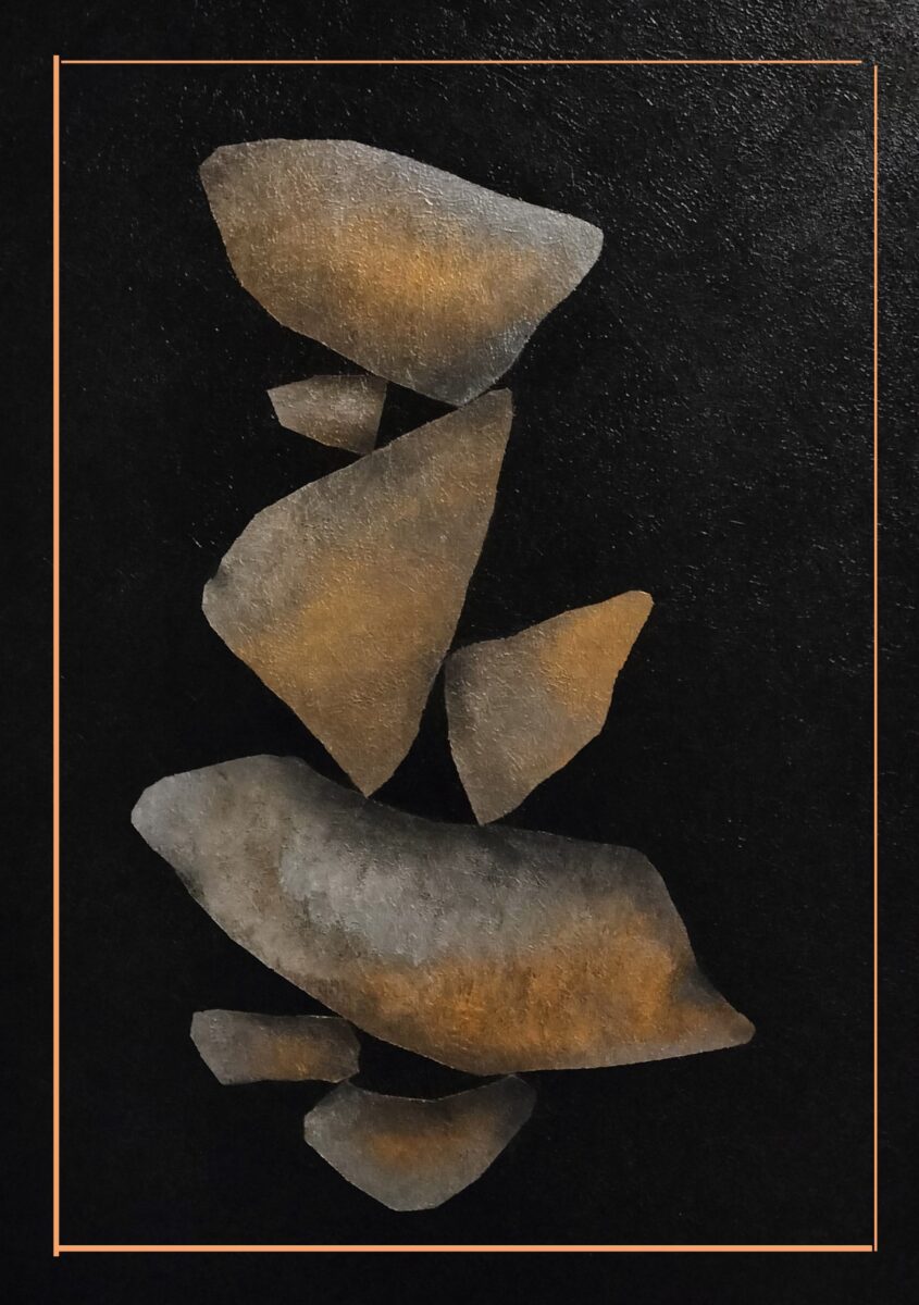 Malując ten obraz zainspirowałam się sztuką układania kamieni, czyli Rock balancing art (równoważenie kamieni).  Polega ona na układaniu kamieni w niestabilnych, pionowych pozycjach, tworząc tym samym delikatne, chwilowe i nietrwałe rzeźby…