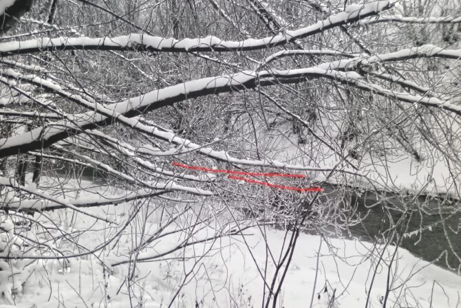 „Blizny” z cyklu „Krew jest w nas”, haft na autorskiej fotografii, 20×30 cm, 2024r