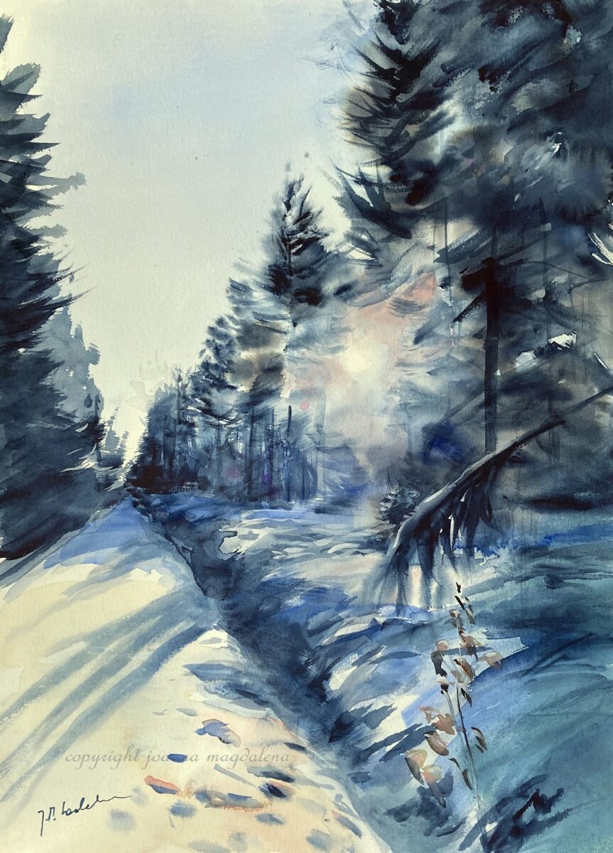 „Blue denim”, akwarela, wym. 56 cm x 42 cm ( z passe-partout 70 cm x 50 cm), praca sygnowana, Certyfikat oryginalności do zakupionego dzieła.