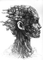 „Cyberbytowanie ” rysunek piórkiem, format A4, praca sygnowana