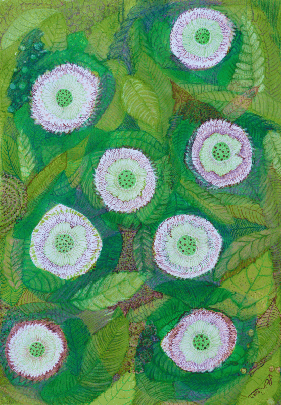 Grafika artystyczna, wymiary pracy: 29,7 cm /42 cm, 2023 r, kolorystyka grafiki zrównoważona z elementami ciepłymi (liście, kwiaty), podpis autora w prawym dolnym rogu,grafika jest bez oprawy, grafika powstała ze swobodnej inspiracji