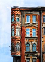 Dom pod Sowami to prawdopodobnie najpiękniejszy budynek starej Pragi. Kamienica mieszkalna przy ulicy Okrzei 26 w Warszawie na Pradze-Północ, zwana Domem pod Sowami – z uwagi na sylwetki sów z rozpostartymi skrzydłami wieńczącymi fasadę budynku, zwracała uwagę nie tylko wyglądem, ale też wyposażeniem. Kamienica, wyższa od innych praskich budynków była także bardziej nowoczesna. Wzrok przyciągała połyskująca elewacja obłożona mozaiką miodowo-bordowego klinkieru, a także ozdobiona płaskorzeźbami nietoperzy i gryfów. Kamienicę ufundował w 1906 roku książę Witold Massalski, wysoki urzędnik kolei Imperium Rosyjskiego, którego ród mimo ruskich korzeni związany był z Polską, Nie ma jasności co do autorstwa projektu. Niektórzy przypisują go Henrykowi Stifelmanowi i Stanisławowi Weissowi. Inni obstają przy tym, że dla księcia Witolda Massalskiego zaprojektował ją jego młodszy brat, architekt Bronisław Massalski. Obraz akwarelowy na podstawie archiwalnej fotografii.