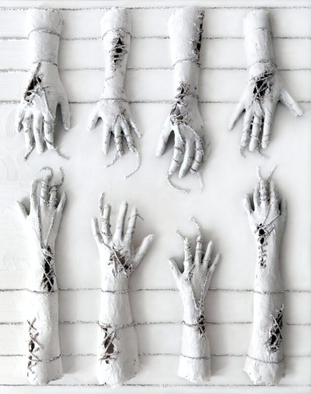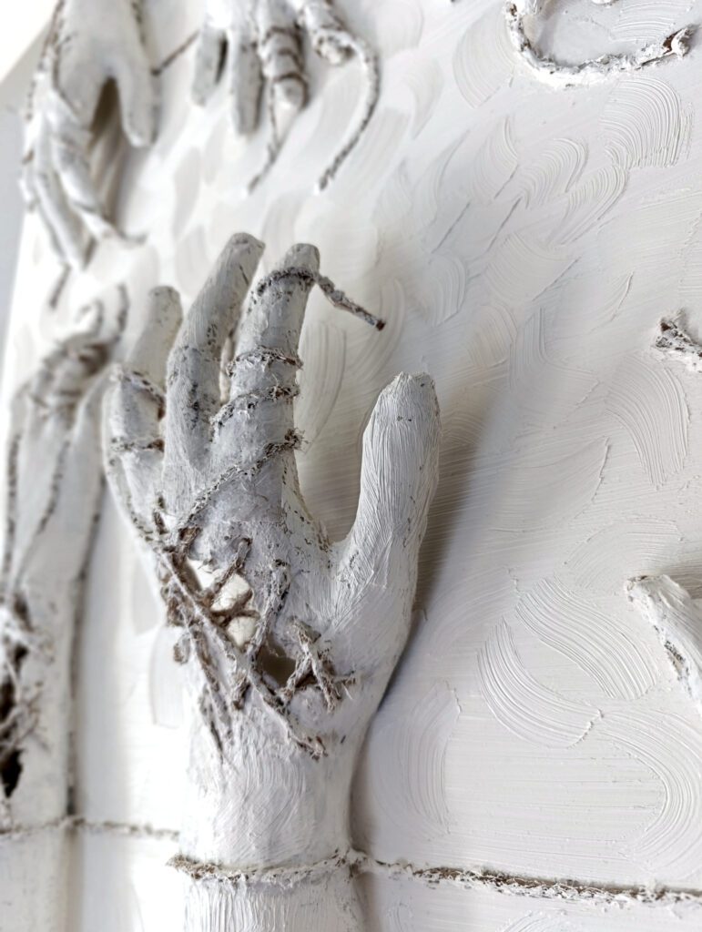 Emocje, 100x80x7 cm, papier mache, sznur, płótno, farba olejna, 2024 rok.
