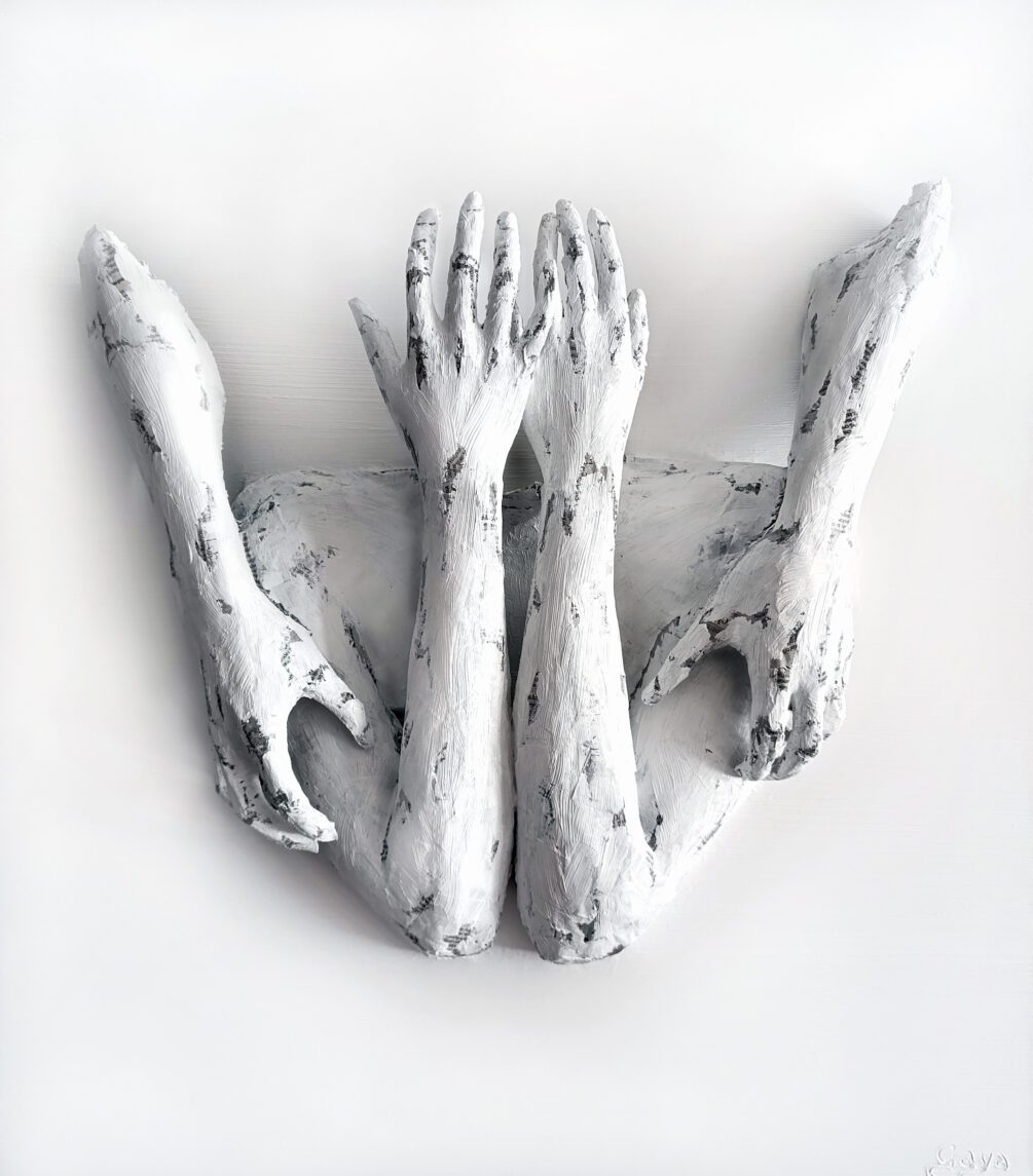 Niezrozumienie, 80x70x14 cm, papier mache, płótno, olej, 2025.