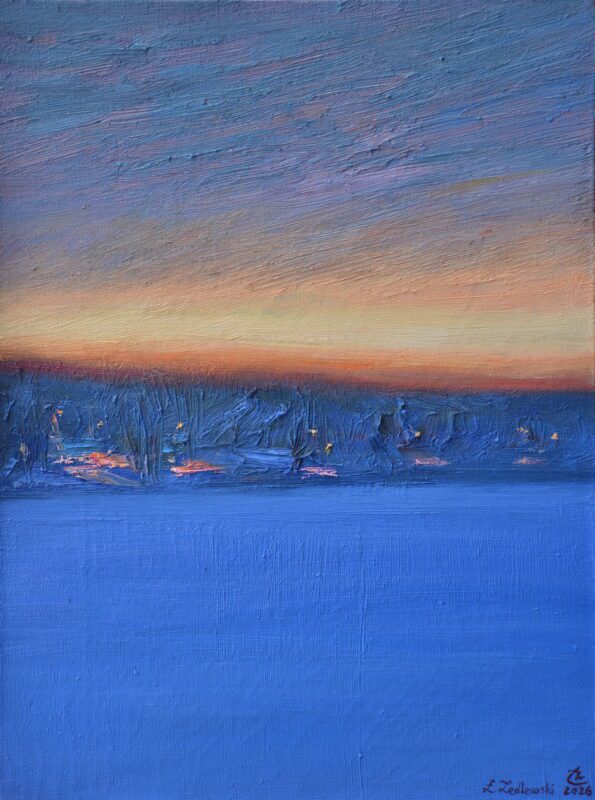 Pejzaż Warmii, technika :olej na płótnie, wymiar 30x40cm, praca sygnowana z przodu oraz podpisana na odwrocie, bez oprawy, certyfikat oryginalności do zakupionego dzieła