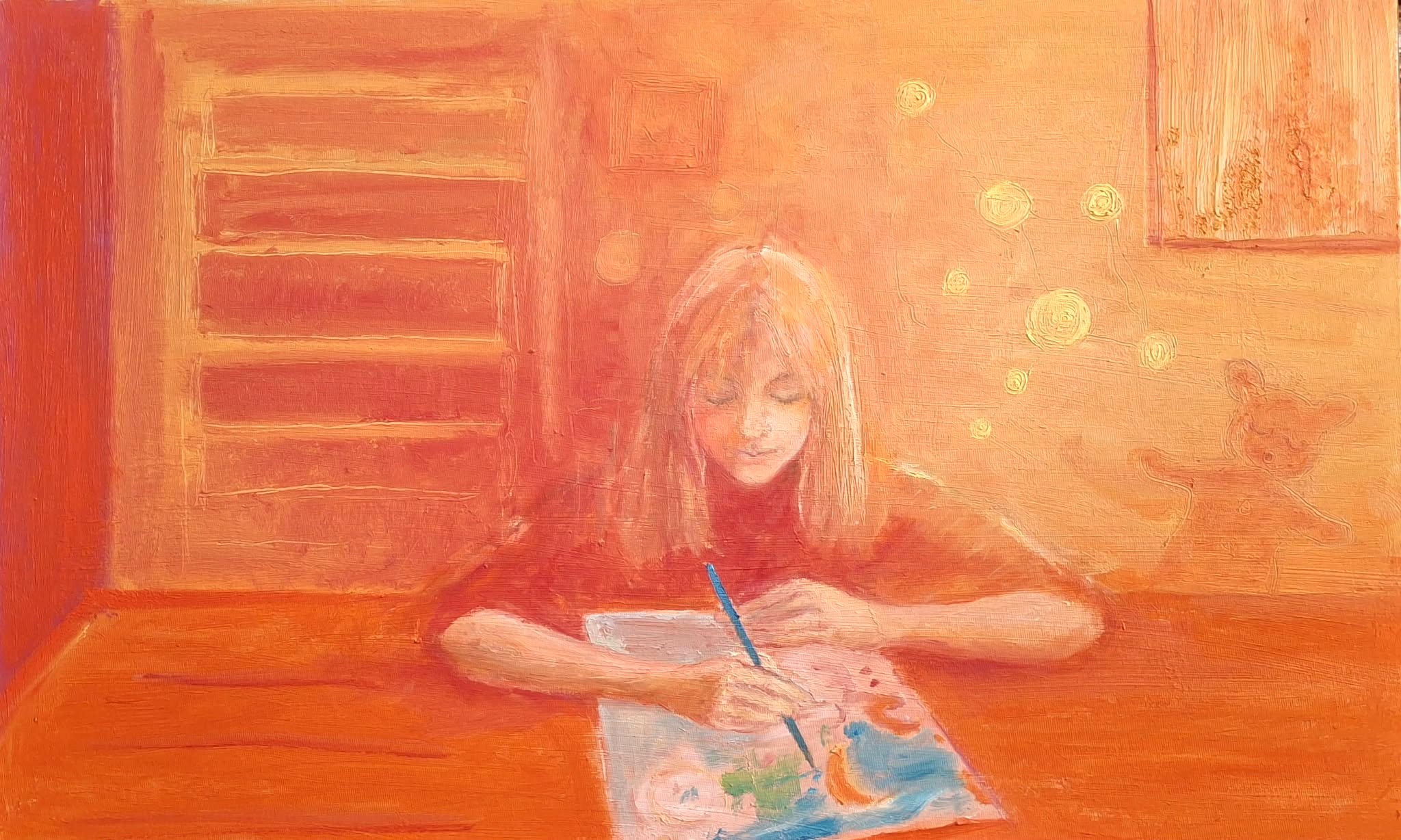 Słoneczny portret, olej na płótnie, 50×80, 2025r, bez oprawy, praca sygnowana przez artystkę, Certyfikat oryginalności.
