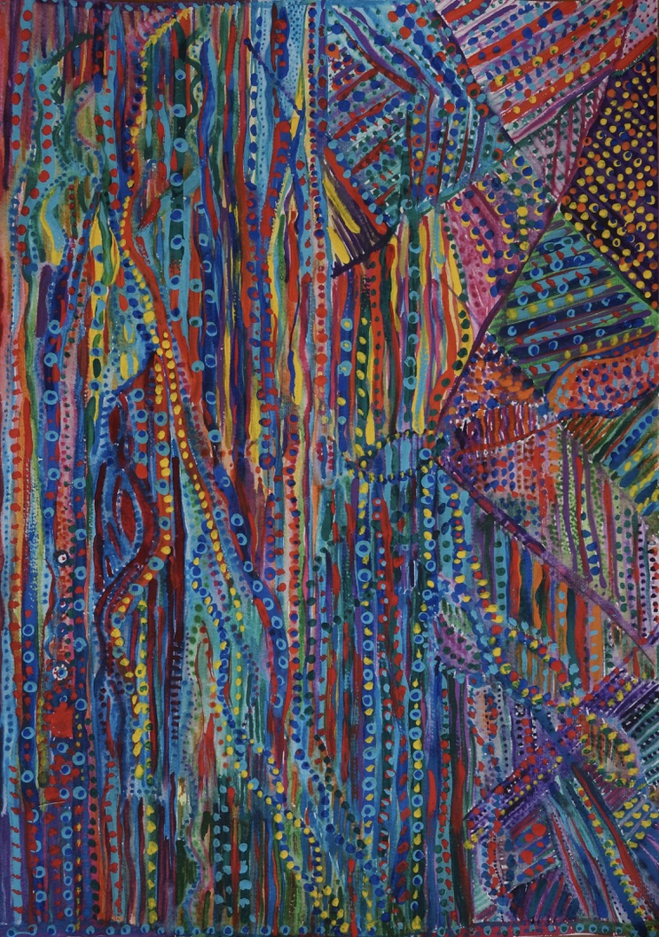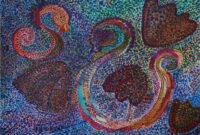 Praca SZCZĘŚCIE wykonana jest techniką tempery, wymiary 42 cm x 60 cm, sygnowana przez artystkę