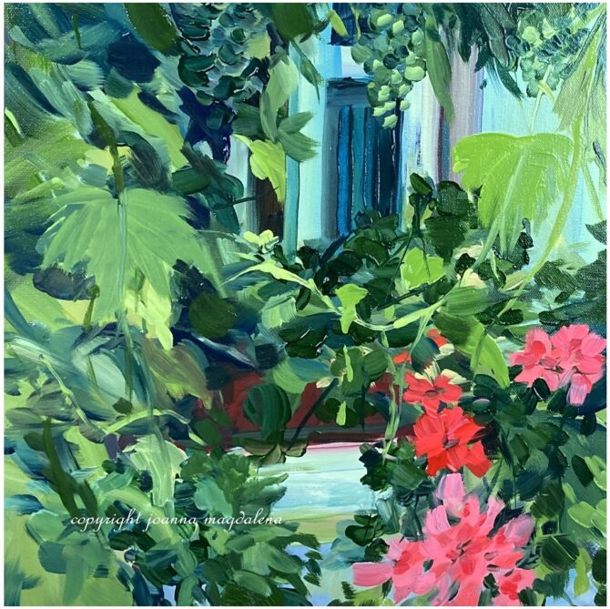 Ukradkiem” – technika: olej na płótnie wym. 40 cm x 40 cm, praca sygnowana przez artystkę, certyfikat oryginalności.