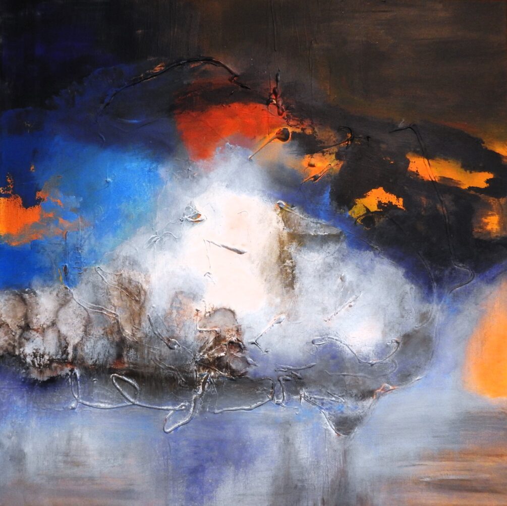 W obrazie dominuje głęboka paleta kolorów: intensywny niebieski, palący pomarańcz oraz złote refleksy, które przełamują ciemność. Centralna część obrazu bucha bielą jakby wyłaniającym się z chaosu obłokiem. Kompozycja jest dynamiczna, niemalże eksplodująca energią, co nadaje całości niepowtarzalny charakter. Artysta zastosował techniki mieszane, gdzie grubo nałożona farba dodaje tekstury, tworząc efekt trój-wymiaru. Atmosfera dzieła łączy tajemniczość z odrobiną dramatyzmu. Obraz namalowany na płótnie, na  grubym 3,5 cm krośnie. Zastosowano technikę mieszaną: akryl i struktura. Boki ma zamalowane, zbędna więc rama, jest zawerniksowany. Monogram z pełnym opisem z tyłu pracy.